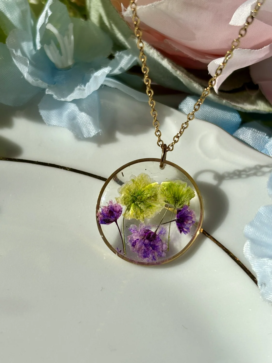 Piękny naszyjnik z ręcznie robioną zawieszką z żywicy z kwiatami