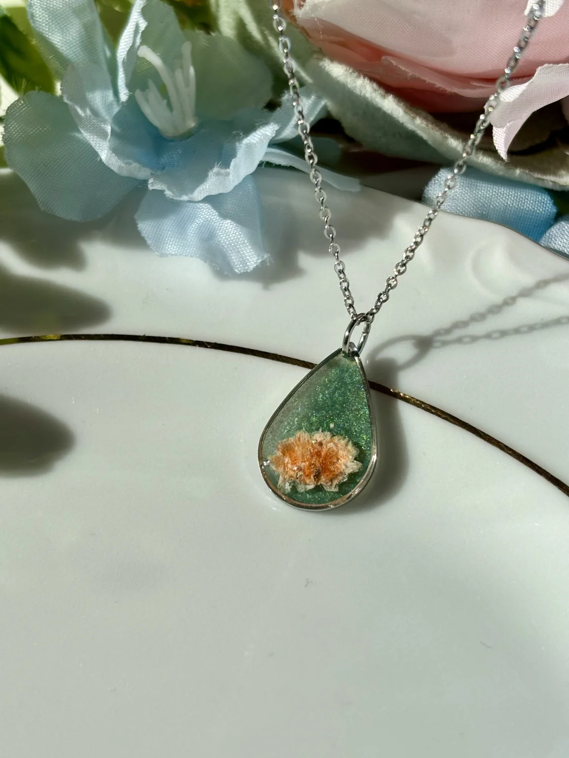 Piękny naszyjnik z ręcznie robioną zawieszką z żywicy z kwiatami