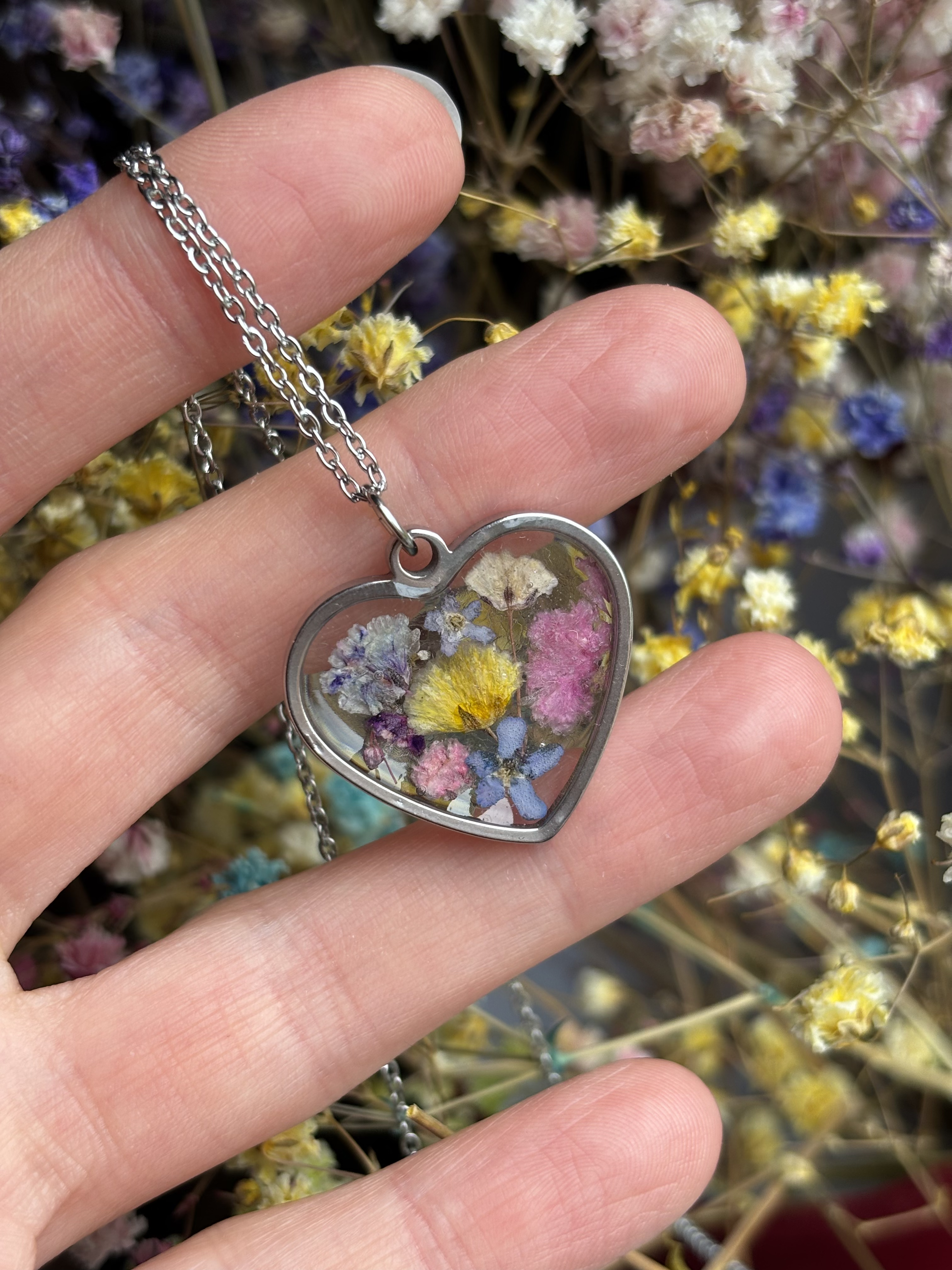Piękny naszyjnik z ręcznie robioną zawieszką z żywicy z kwiatami